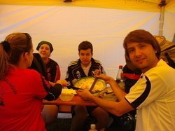 Dieses Ziel erreichten wir dann auch mit zwei deutlichen 2:0-Siegen gegen Gegner, gegen die wir uns nicht voll verausgaben mussten. Uneingeschränkt zufrieden konnten wir dagegen mit der Verpflegung sein. Heike "Mama" Wersching hatte mit einer mit Schichtsalat üppig gefüllten Schüssel, Käse und Baguette versorgt, die wir während des Turniers immer wieder genüßlich verspeisten.