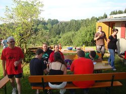 - Um 17 Uhr verkündete Gerhard bei sintflutartigem Regen auf dem Binsenbol : Gartenhütte wegen Überfüllung geschlossen