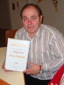 Nach dem Essen begann ein wieder Mal abwechslungsreiches Programm. Zunächst erhielt Wolfgang Fink eine Urkunde für 40-jährige Vereinstreue. Im Anschluss daran betrat Gerhard Gulde die Bühne und nutzte die feierliche Gelegenheit, um den anwesenden Mitgliedern des SV Balingen die Kinder aus seiner Trainingsgruppe in Wort und Bild vorzustellen. Sie hatten in den letzten Wochen für das Bauerndiplom trainiert und erhleiten jetzt aus seinen Händen diese Urkunde. Neben Sonja Zirkel, Linda Ott, Laurin Schlotter, Linus Gmelin, Kai Föst, Daniel Axt, Michael Axt und Fabian Herter, die das Bauerndiplom entgegen nahmen, bekamen Hagen Martin, Uwe Haumann, Lawrence Kern, Terence Kern und Pascal Müller zur gleichen Zeit das Turmdiplom.