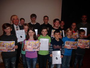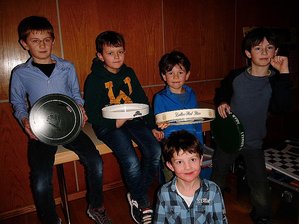 Die Stunden vergingen bei angeregten Gesprächen mit netten Menschen, die man teilweise nur einmal im Jahr trifft, wie im Fluge. Auch weil das Programm der Weihnachtsfeier wie immer kurzweilig war. Nach Jürgens Ansprache wurde das Essen serviert : Sauerkraut, Fleisch und Brot sowie PIzza verschiedener Sorten. Viele JUgendliche aus den Gruppen von Gerhard und Michael wurden für wochenlanges Training auf der Bühne mit einem Schachdiplom belohnt. Der Weihnachtsmann schaute vorbei und verteilte an unsere Jüngsten Wichtelgeschenke. Und natürlich hatten Michael und Hagen ein Jahr lang Fragen für die beiden Runden des heiß ersehten Weihnachtsquiz' vorbereitet. Wie immer an dieser Stelle eine kleine Auswahl :