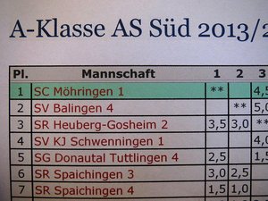 SC Nusplingen 1 - SV Balingen 0,5:3,5 und 2,5:1,5