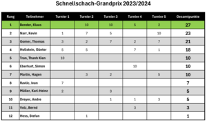 Jetzt ist es offiziell. Klaus Bender gewinnt auch den Schnellschach-Grandprix 2023/2024. Damit hat Klaus alles gewonnen, was es dieses Jahr zu…