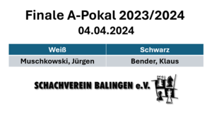 UPDATE: Klaus Bender gewinnt mit Schwarz und holt sich damit seinen insgesamt vierten A-Pokal-Titel. Nächste Woche könnte er dann das Double (Pokal…