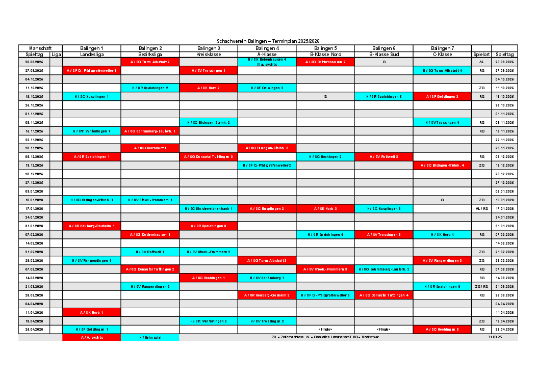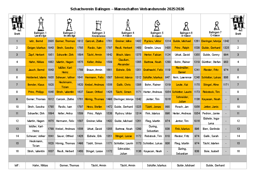 Gestern war der Meldeschluss für die Meldung der Mannschaftsaufstellungen. Wir werden auch in der kommenden Saison wieder mit sieben Balinger Teams an der Verbandsrunde teilnehmen. Die zugehörigen Dateien gibt es unten. Nach einem Jahr mit vielen Abstiegen hoffen wir natürlich auf bessere Ergebnisse.
