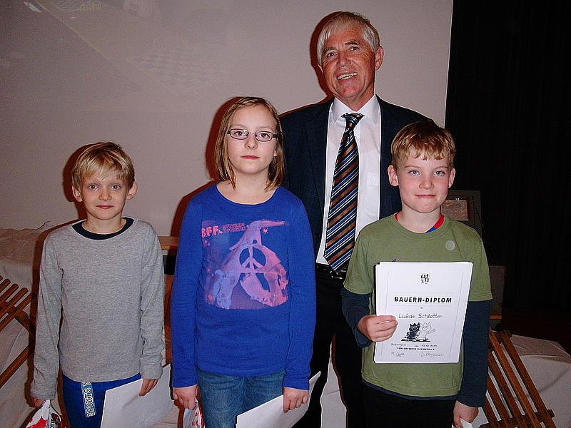 Anlässlich der Weihnachtsfeier durften auch fünf unserer jüngsten Schachkinder ein Bauerndiplom aus den Händen ihres Trainers Gerhard Gulde entgegen nehmen.
