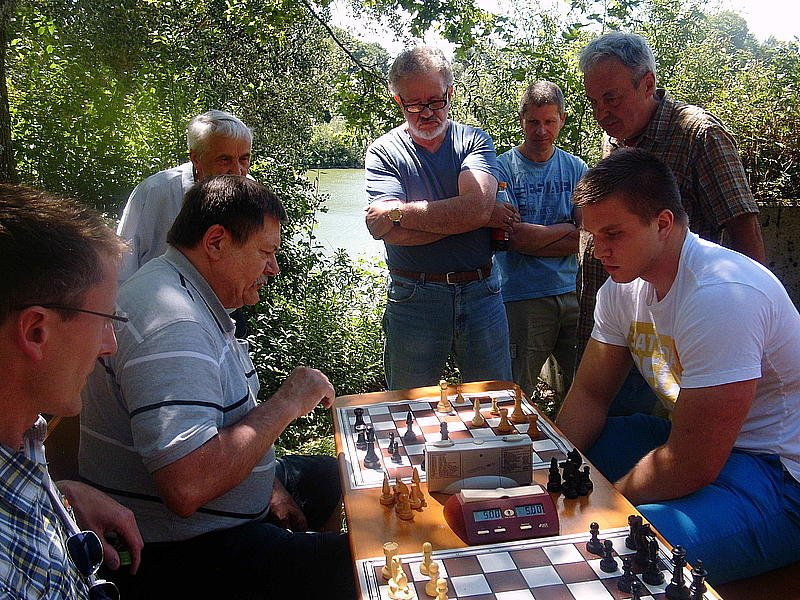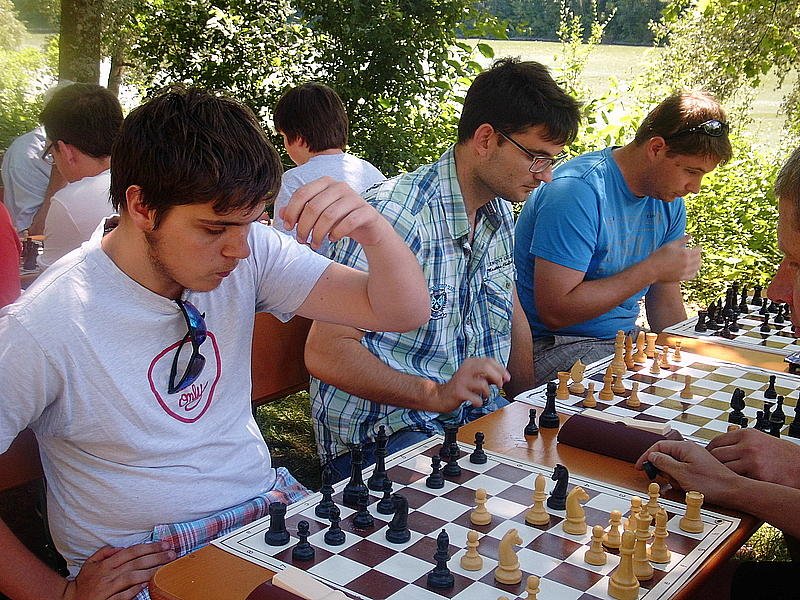 Nur wenige Meter vom Wasser entfernt hatten sich 18 Teilnehmer aus Balingen, Schömberg, Albstadt, Frommern, Rottweil und Dotternhausen im Schatten einiger Bäume eingefunden. Gespielt wurden also 17 Runden. Und wer hätte gedacht, dass sich im Erstrundenduell zwischen André Dreyer und Ivan Ravlic die am Ende Punktbesten gegenüber stehen würden. Trotz eines Mehrbauerns musste Ivan ins Remis einwilligen : vielleicht der halbe Punkt, der ihm am Ende fehlte.