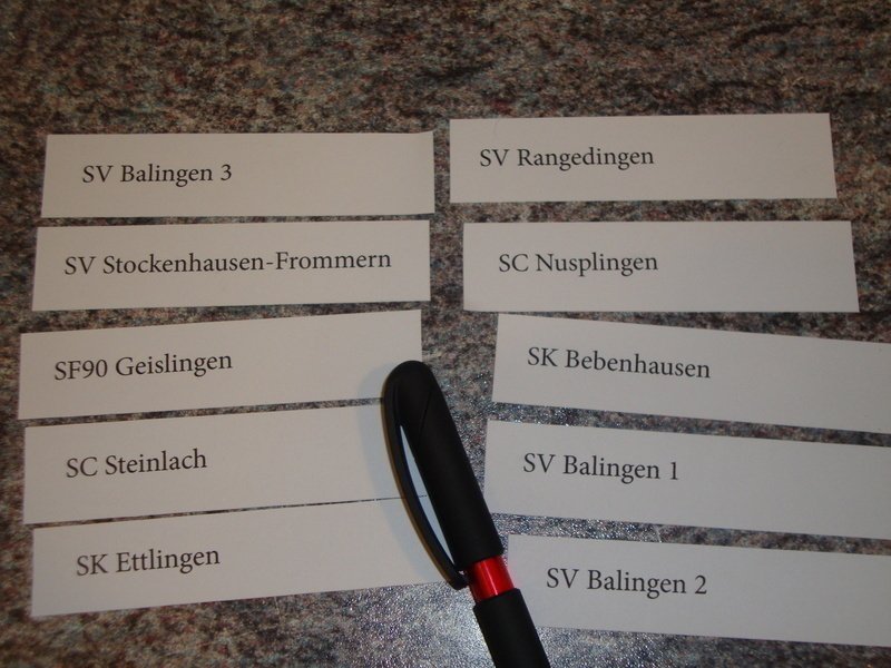 In die erste Vorrundengruppe loste er die Mannschaften aus Ettlingen, Steinlach, Geislingen, Frommern und Balingen 3. In der anderen Gruppe spielen SV Balingen 1 und 2, SK Bebenhausen, SC Nusplingen und der SV Rangedingen.