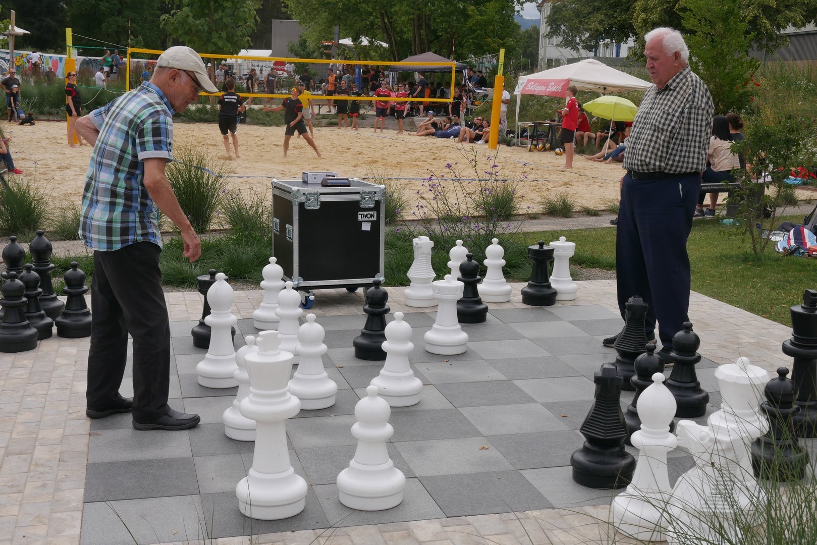 1. Am Sonntag, 7. September treffen wir uns zur Schach-Hockete am Großfeldschach in den Erlebnisauen auf dem Gartenschaugelände. Ich hoffe, dass wir dort dann zahlreich zwischen 14 und 17 Uhr zusammen kommen, um gemeinsam unter freiem Himmel Schach