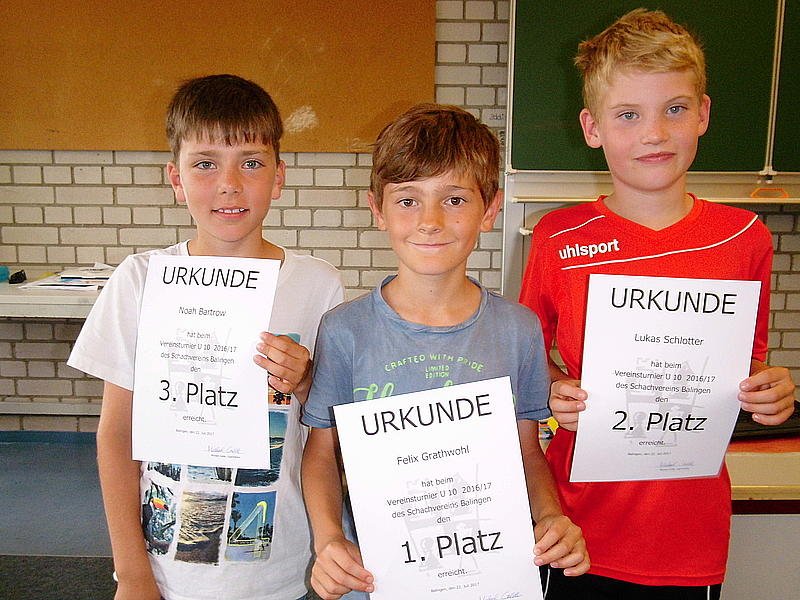 Am häufigsten anwesend beim Trainingsnachmittag am Samstag waren Tim Jenter, Ina Schuler, Tizian Heckmann, Kai Leuthe und Lawrence Kern. Geehrt wurden auch die Sieger der diesjährigen Jugend-Vereinsturniere. Die Urkunden gingen an Hagen Martin (U18), Kai Föst (U16), Paul Claußen (U14) und Felix Grathwohl (U10).
