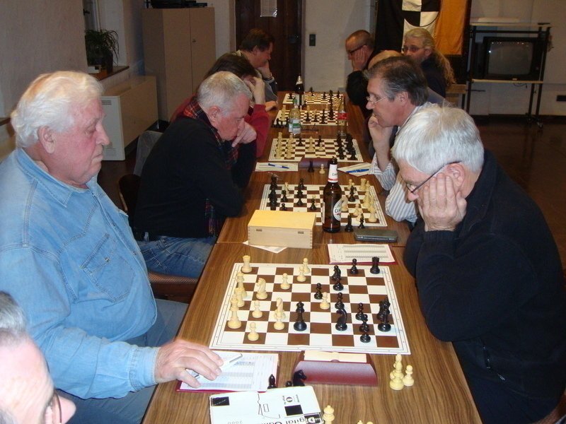A propos Klaus Bender. Der machte gestern einen großen Schritt in Richtung Vereinsmeisterschaft. Im Nachholspiel der siebten Runde spielte er gegen seinen schärfsten Verfolger Andre Dreyer Remis und hat somit weiterhin einen halben Punkt Vorsprung.