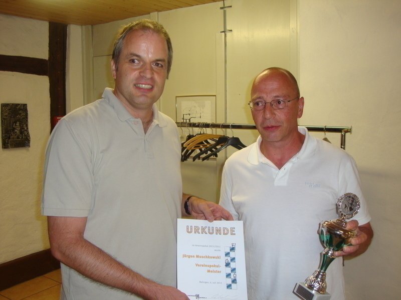 Jürgen war es auch, dem in dieser Saison mit dem Gewinn des Doubles aus A-Pokal und Vereinsmeisterschaft ein ganz besonderes Kunststück gelang. Der letzte, der das schaffte war im Jahr 1996 Klaus Bender (allerdings fehlen in unserer Meisterchronik einige Jahre. Vereinsmitglieder, die dazu beitragen können diese Lücken zu schließen, dürfen sich gerne an mich wenden. Die entsprechenden Chroniken finden Sie<link internal-link internal link in current> hier und <link internal-link internal link in current>hier).