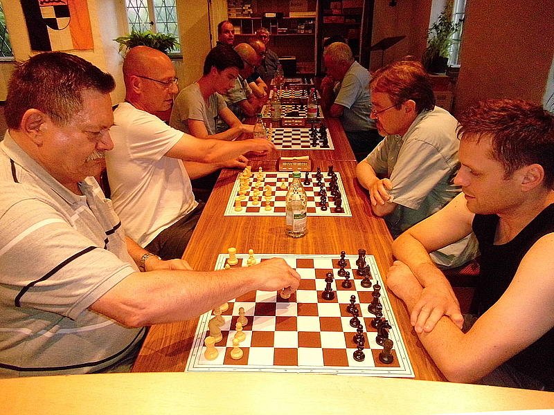 Im Augenblick gibt es mit Mike Molz nur noch einen Spieler, der ungeschlagen ist. Mit 141,0 Keizer-Punkten führt er das Feld der 13 Teilnehmer vor Jürgen Muschkowski (132,0) und Klaus Fuß (106,0) an. Im Keizer-System, das nur Turnierleiter Sebastian During annähernd begreift, ist es auch für alle Interessierten möglich und erwünscht, am kommenden, Donnerstag, 14. Juli neu ins Turnier einzusteigen.