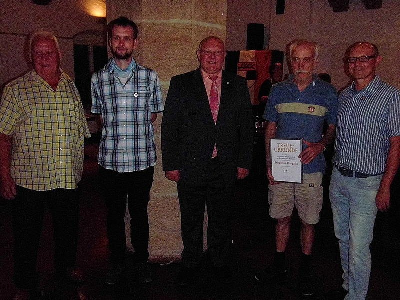 Erfreulicherweise gab es auch in diesem Jahr wieder sehr viele Ehrungen für langjährige Vereinstreue. So erhielten Mike Greiner, Viktor Ryzkov, Jan Rosch, Manuel Schwald und Martin Kunze die silberne Ehrennadel für zwanzigjährige Mitgliedschaft. EIn Exemplar in Gold durften Sascha Stroh und Klaus Weingärtner entgegen nehmen. Beide haten dem SVB schon seit 30 Jahren die Treue. Eine Auszeichnung der besonderen Art gab es für Sebastian Gargallo. Sebastian nimmt seit nunmehr 40 Jahren zuverlössig an unseren Vereinsturnieren teil und ist eine große Stütze unserer 3. Mannschaft. Jürgen Muschkowski überreichte ihm dafür eine mehr als verdiente Ehrenurkunde.