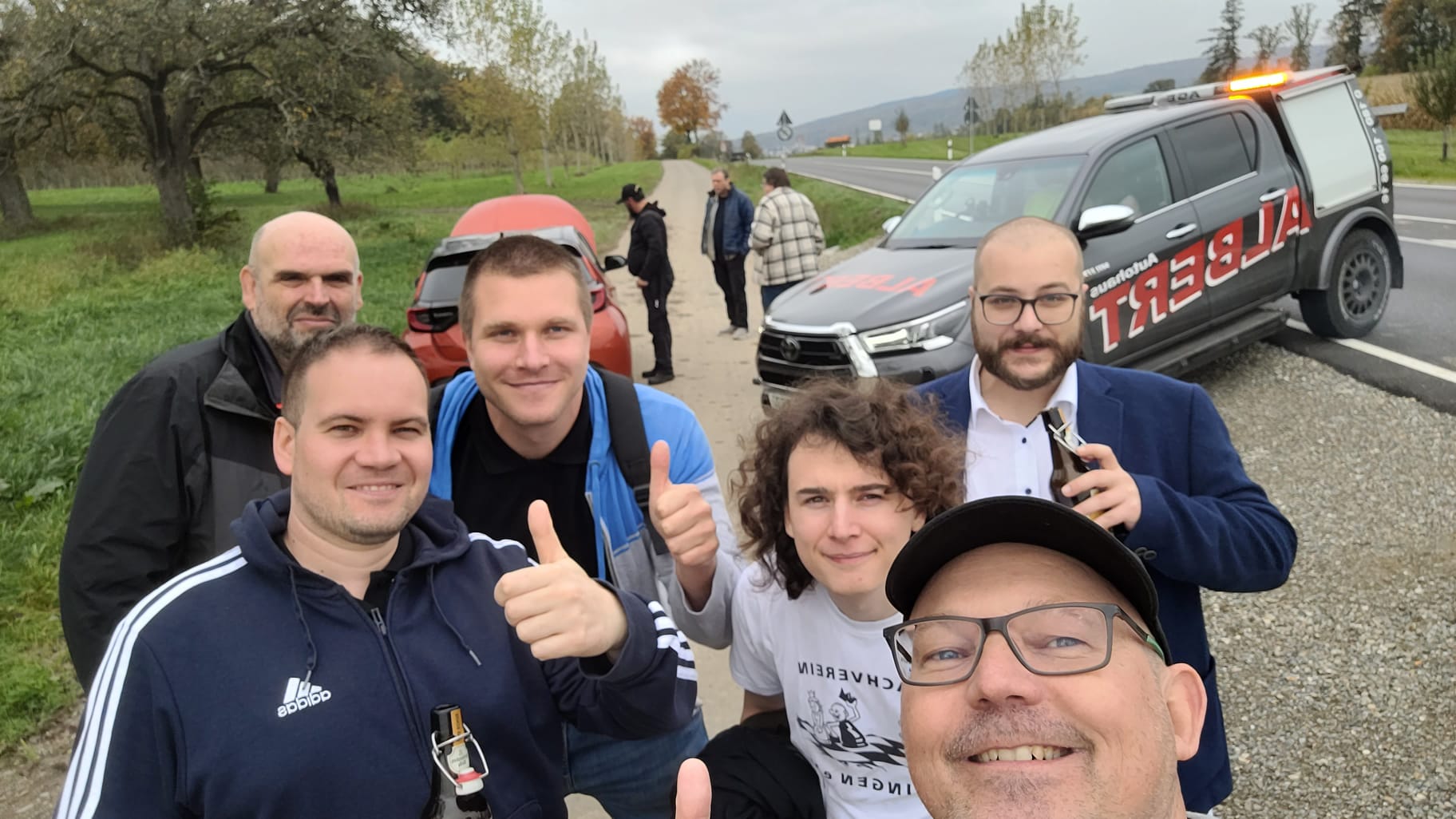Damit konnte der SV Balingen nach einer sieglosen Verbandsligasaison 2013/2014 den ersten Verbandsligasieg seit über 15 Jahren verbuchen! Da war es dann nicht mehr ganz so schlimm, dass wir einige Stunden auf dem Fahrradweg verweilten und darauf warteten, dass der Pannendienst das liegengebliebene Auto wieder fit machte. Dabei entstand auch das etwas andere Mannschaftsfoto. Man muss die Gelegenheit einfach ergreifen, wenn man schon Mal mit der kompletten Stammbelegschaft anreist. Auch der anschließende Besuch zur späten Stunde im Orient-Imbiss mit der kompletten Mannschaft ist hervorzuheben.