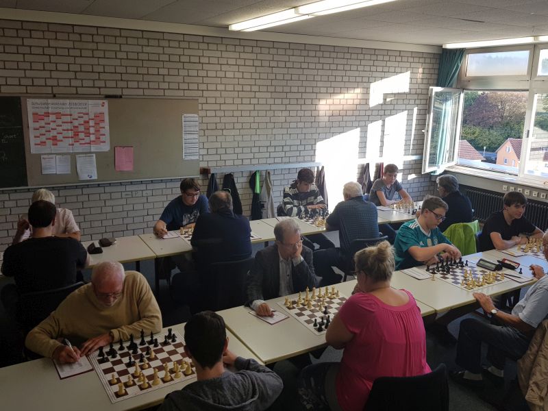 Die Partien an den ersten beiden Brettern endeten jeweils mit Remis. Nachdem er zwischenzeitlich unter Druck stand, konnte Gerhard Gulde an Brett 1 eine total ausgeglichene Stellung und damit ein Remis erreichen. Tim Reicherts Partie an Brett 2 war immer ausgeglichen und endete folgerichtig ebenfalls mit einer Punkteteilung.