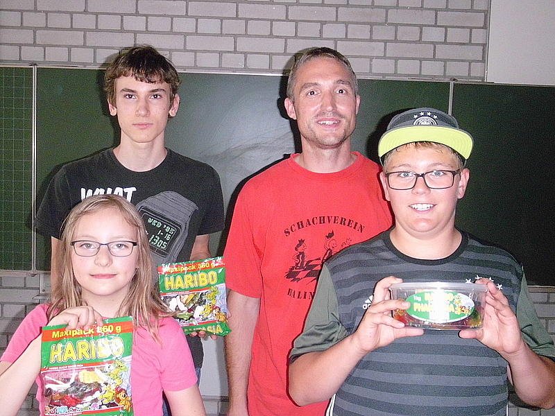 Immer am letzten Schulsamstag lädt Jugendleiter Michael Gulde die Eltern unserer Schachkinder zu Kaffee und Kuchen ein und lässt das vergangene Schachjahr Revue passieren. Traditionell erhalten die Jugendlichen mit den meisten Trainingsbesuchen eine kleine Anerkennung. In diesem Schuljahr waren dies Tim Jenter, Fabian Herter und Ina Schuler.