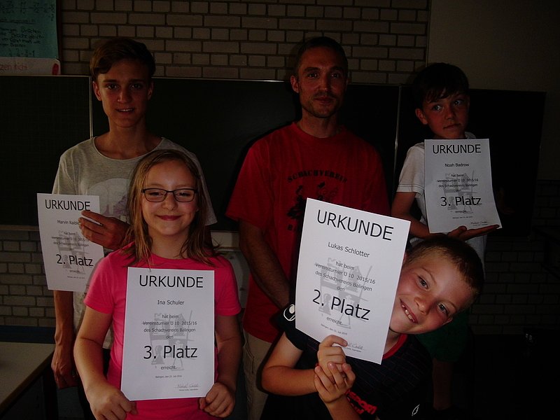 Heute fand die Jugend-Abschlussfeier des SV Balingen in der Realschule statt. Geehrt wurden die Vereinsmeister Lawrence Kern (U16), Alexander König (U16), Paul Claußen (U12) und Felix Gratwohl (U10).