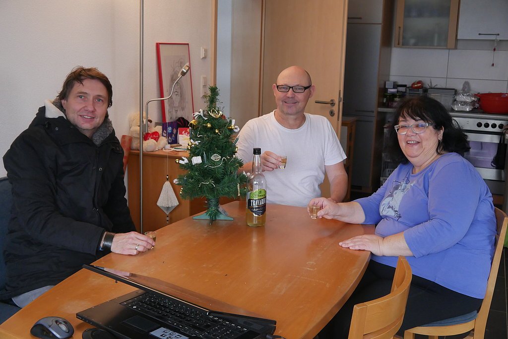 Und wo wir schon mal in Geislingen sind, besuchen wir am 22.12. natürlich auch die zweite Familie Stroh. Unter Einhaltung aller Abstabdsregeln laden mich Spomi und Sascha selbstverständlich ein, auf das Wiedersehen nach langen Monaten anzustoßen. Wir unterhalten uns über Homeoffice (Spomi muss man wohl mit Fug und Recht als eine Pionierin in diesem Bereich bezeichnen) und Bekannte, die schwer an Corona erkrankt sind.