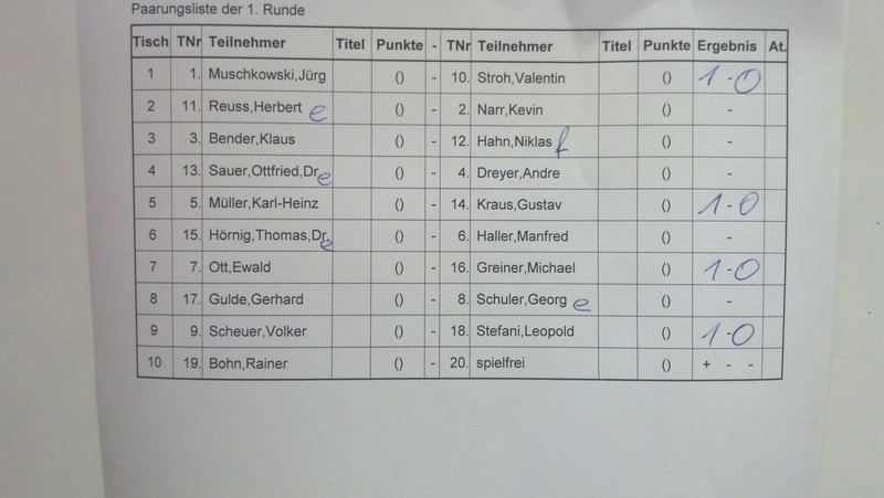 Heute Abend war die erste Runde im diesjährigen Vereinsturnier angesetzt. Obwohl noch einige Schachfreunde ins Teilnehmerfeld aufgenommen werden müssen, wurden bereits die ersten Partien ausgespielt.