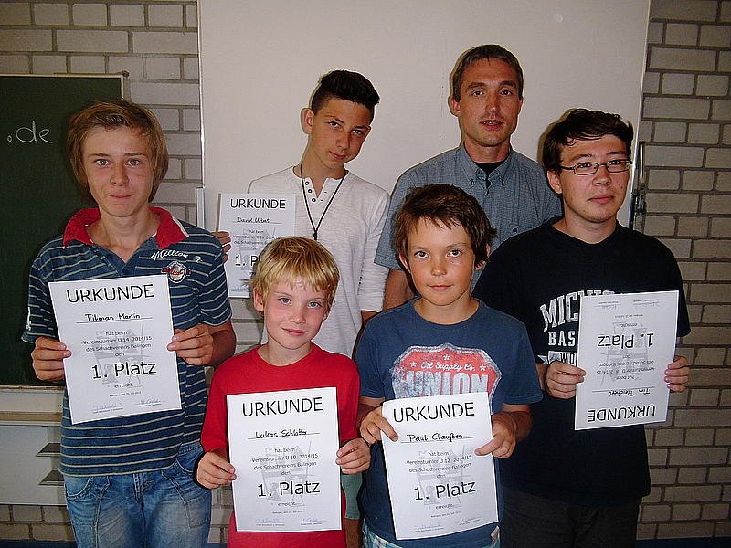 Unter großem Applaus erhielten die Vereinsmeister Lukas Schlotter (U10), Paul Claußen (U12), Tilman Martin (U14), David Urbat (U16) und Tim Reichert (U18) Pokale und Urkunden. Geehrt wurden auch wieder die Jugendlichen, die im Verlauf des Schuljahres am häufigsten beim Trainingsnachmittag anwesend waren. Es waren dies Lawrence Kern, Fabian Herter und Elias Raible.