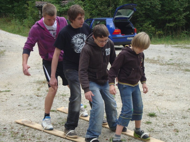 Der Höhepunkt des Samstags war zweifelsohne die traditionelle Geländerallye, die Heidi Jetter und Markus Schäfer wieder mit großem Einsatz und viel Kreativität vorbereitet hatten. Die 20 Teilnehmer mussten in Gruppen ihre Fähigkeiten beim Wasserbomben Schleudern, Erbsen Zertrümmern oder beim Gehör-Memory unter Beweis stellen. Am besten gelang dies dem Team "Banane" mit Rainer Bohn, Thomas Gomer, Terence Kern und Linus Gmelin.