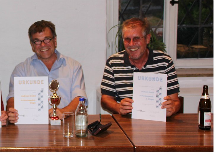 Auch im B-Pokal gab es den erwarteten Favoritensieg. Der Topgesetzte Andreas Krebel schaltete auf dem Weg zu seinem ersten Pokalerfolg im SV Balingen mit Herbert Reuß, Dr. Otfried Sauer und Marc Ilitsch die Nummer Zwei, Vier und Sechs des Tableaus aus : ein mehr als verdienter Sieg also. Für die meisten Jugendspieler war spätestens im Achtelfinale Schluss. Nur Lawrence Kern schaffte den Sprung unter die letzten Acht, wo er dann gegen Andreas Krebel verlor.